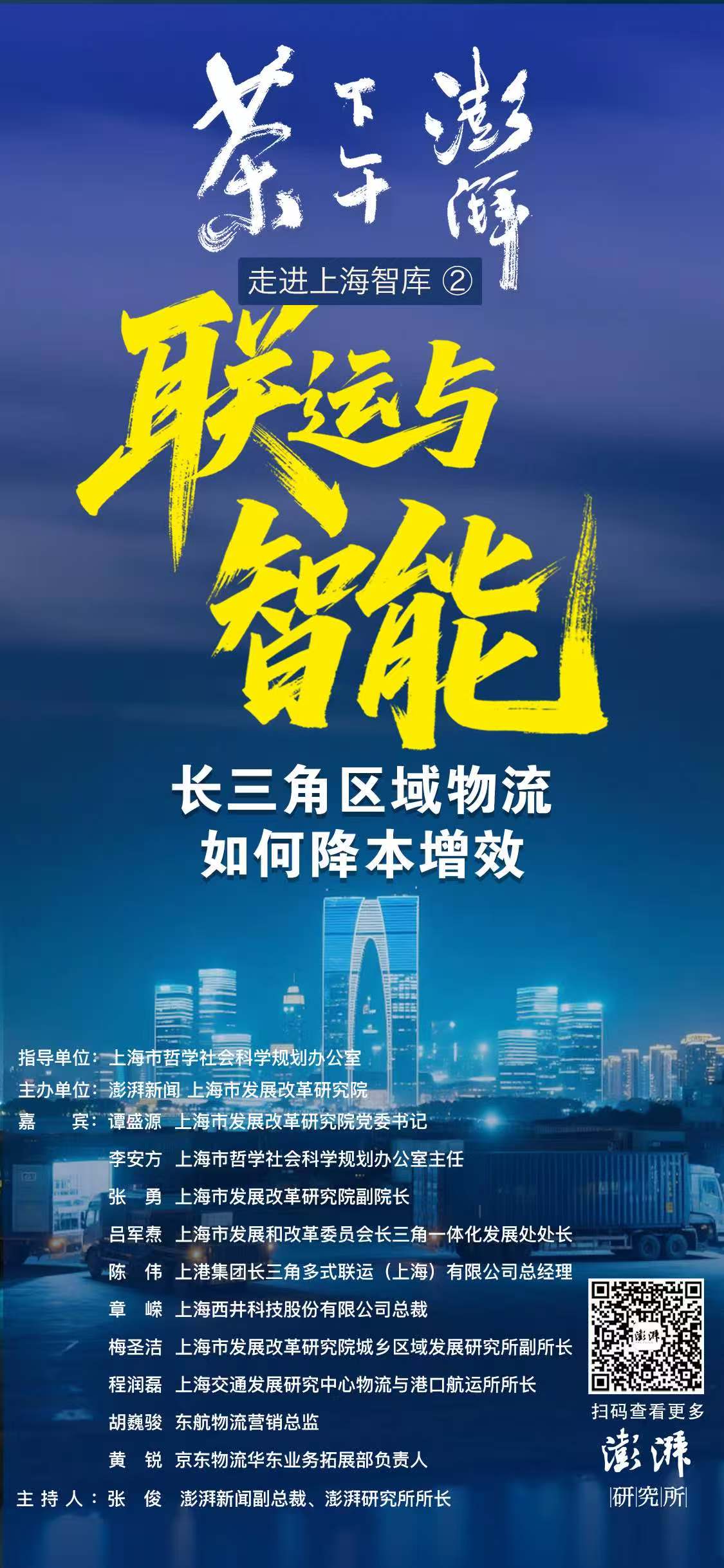 近日,由上海市哲学社会科学规划办公室指导,上海市发展改革研究院与澎湃新闻主办,澎湃研究所承办的“澎湃下午茶/走进上海智库”系列第二场研讨会在上海市发展改革研究院举行。本次会议以“联运与智能:长三角区域物流如何降本增效”为题,邀请来自智库、企业、媒体与政府嘉宾共议长三角物流的现状、挑战与破局之道。来看澎湃新闻的报道↓